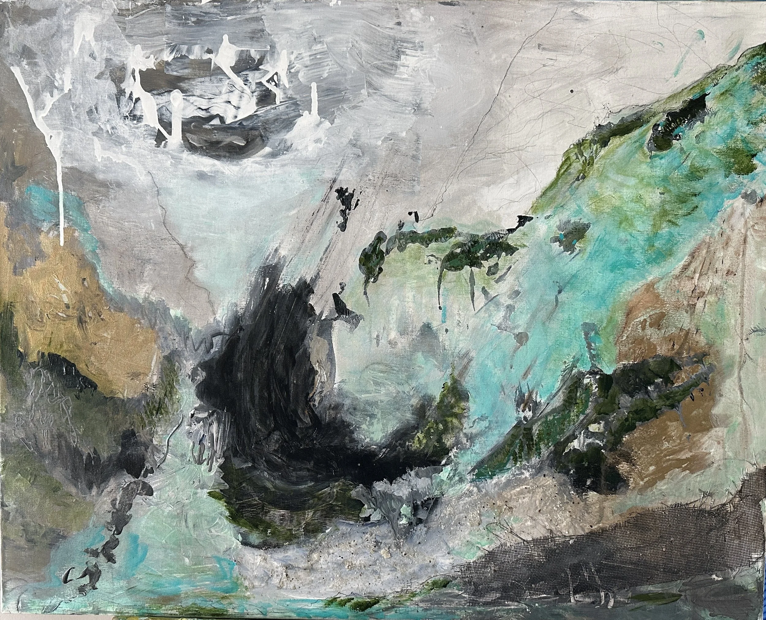 On the Precipice, Mixed Media and acrylic collage on canvas 48" x 60" 2020 Currently on view at the Boca Raton Innovation Campus (BRIC)